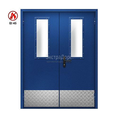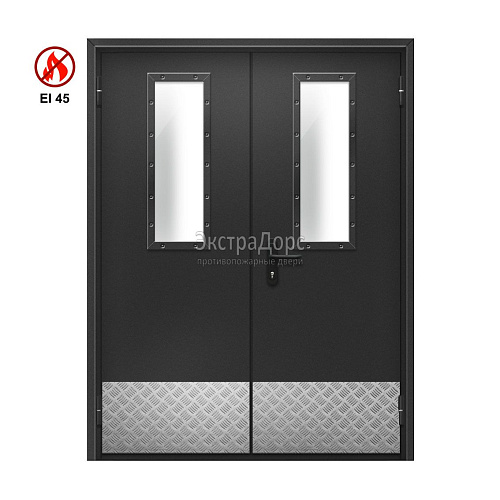 Двухстворчатая огнестойкая дверь EI 45 ДОП-02-EI45 ДП121 двупольная остекленная