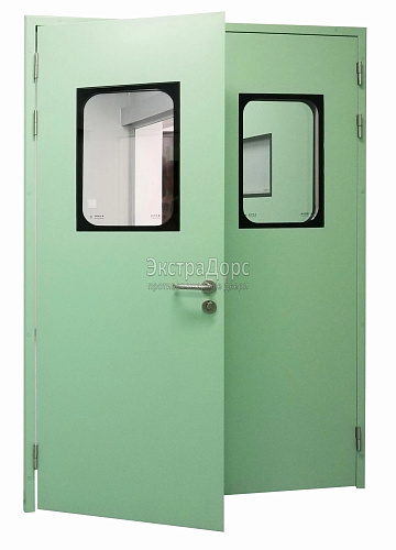 Двухстворчатая огнестойкая дверь EIW 60 зеленая со стеклом