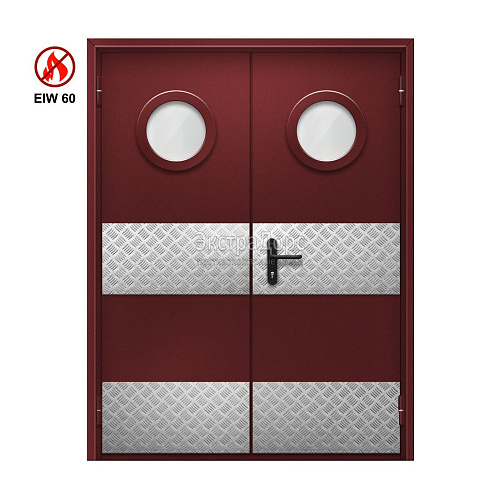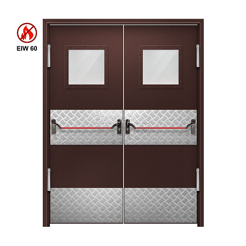 Двухстворчатая противопожарная дверь EIW 60 стальная с остеклением