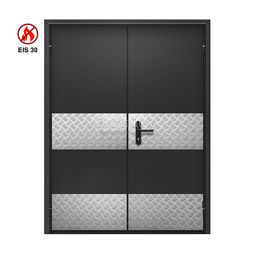 Металлическая противопожарная дверь EI 30 ДМП-01-30 металлическая двупольная с огнеупорной ручкой
