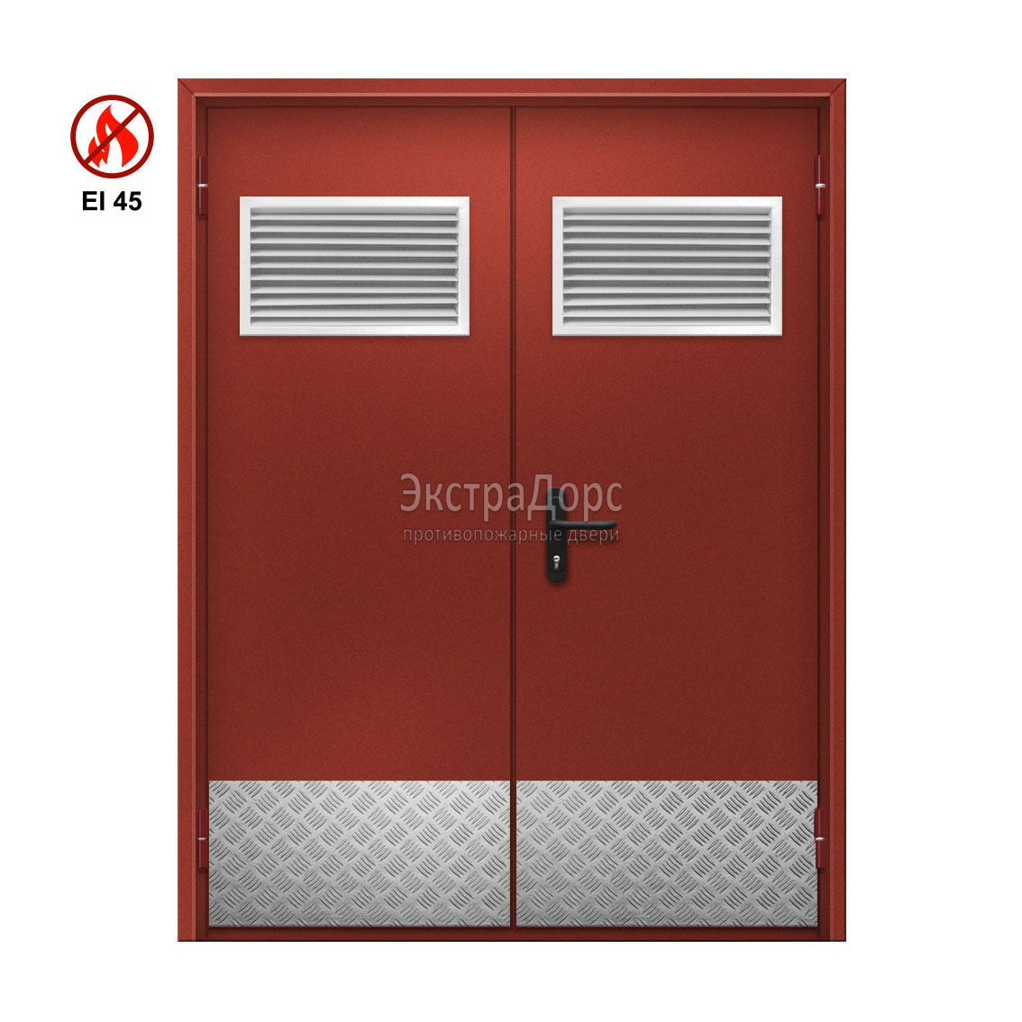 Двупольная огнестойкая дверь EI 45 ДГ-02-EI45 ДП123 двупольная глухая с решеткой в Пушкино