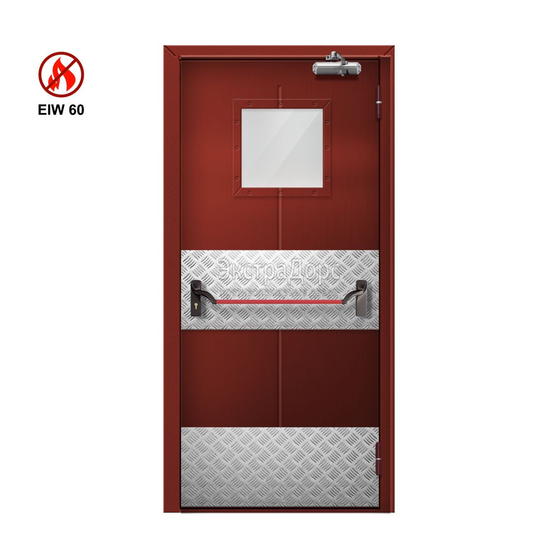 Дверь противопожарная металлическая однопольная EIW 60 ДМП-01-EIW-60 ДП58 остекленная с антипаникой в Пушкино