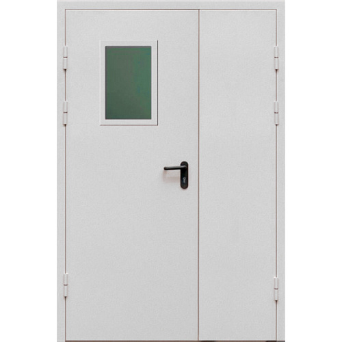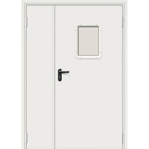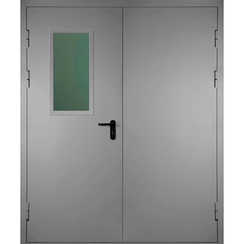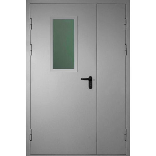 Распашная дверь огнеупорная двупольная с окном порошковая