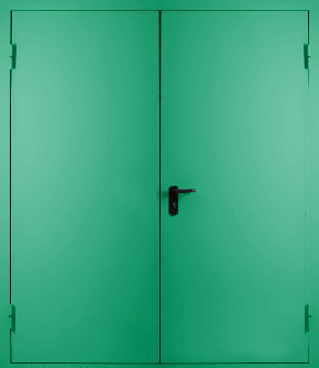 Противопожарная дверь с шумоизоляцией двупольная зеленого цвета