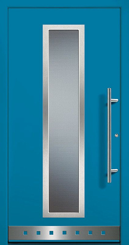 Шумоизоляционная противопожарная дверь голубого цвета полуторная
