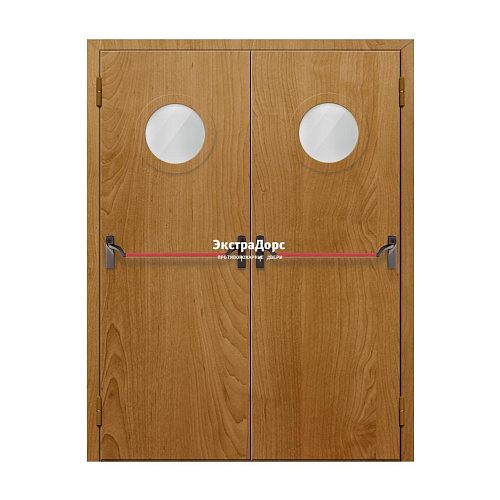 Двухстворчатая огнестойкая дверь EI 60 ДО-02-EI-30 двупольная остеклённая стальная с МДФ и антипаниками