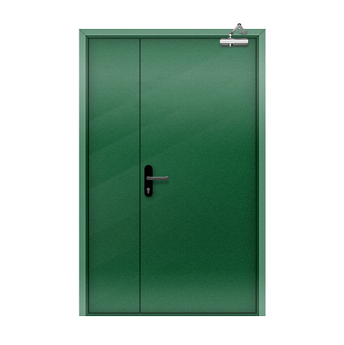 Огнеупорная дверь со скрытыми петлями 3-го типа полуторная цвет RAL 5005