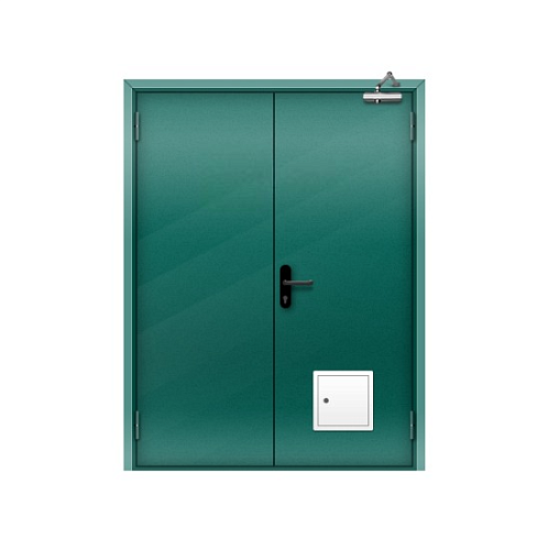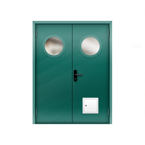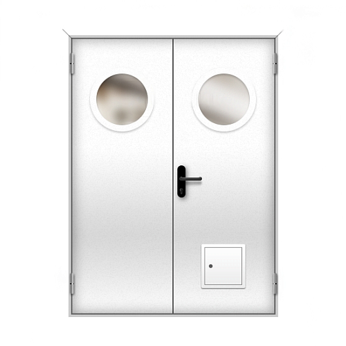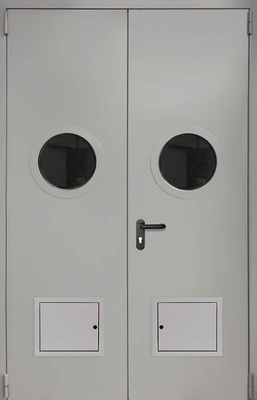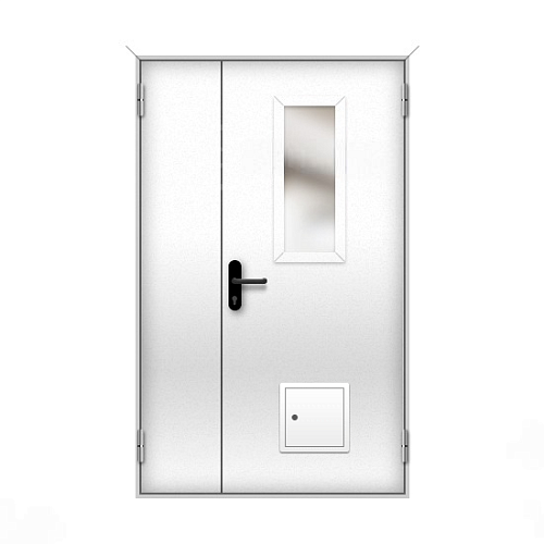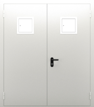 Дверь противопожарная со стыковочным узлом двупольная остекленная