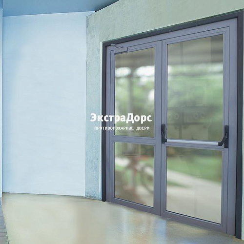 Противопожарная дверь остекленная двухстворчатая с доводчиком