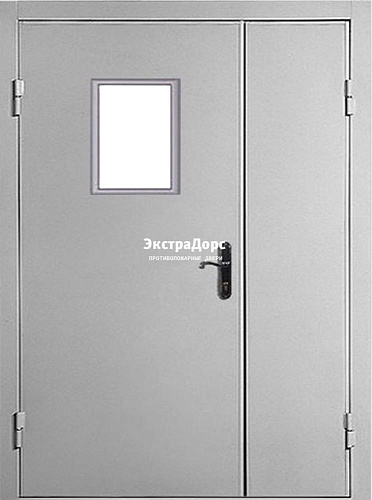 Противопожарная дверь с одной решёткой двупольная со стеклянным иллюминатором
