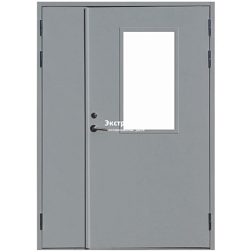 Металлическая противопожарная дверь EI 60 ДПМО-01-60 остекленная полуторная