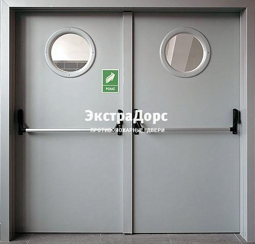 Противопожарная дверь двухстворчатая порошковая с антипаникой