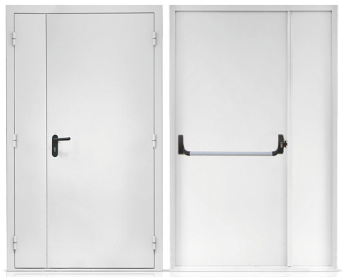 Двухстворчатая противопожарная дверь EI 60 ДГ-02-EI-30 двупольная глухая входная с МДФ и антипаниками