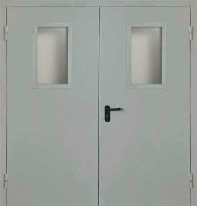 Двупольная огнестойкая дверь с порошковым покрытием EIW 60 двупольная стальная с остеклением