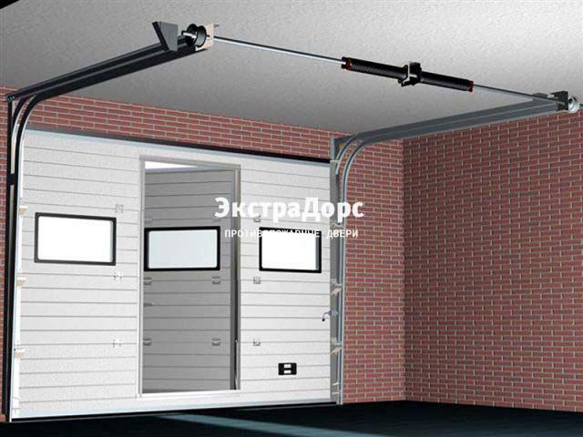 Подъемные противопожарные ворота с окнами и поворотной калиткой в Пушкино