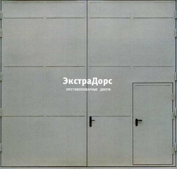 Противопожарные распашные серые ворота с калиткой в Пушкино