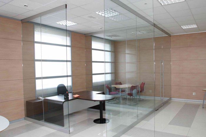 Противопожарная безрамная дверь в переговорную в Пушкино